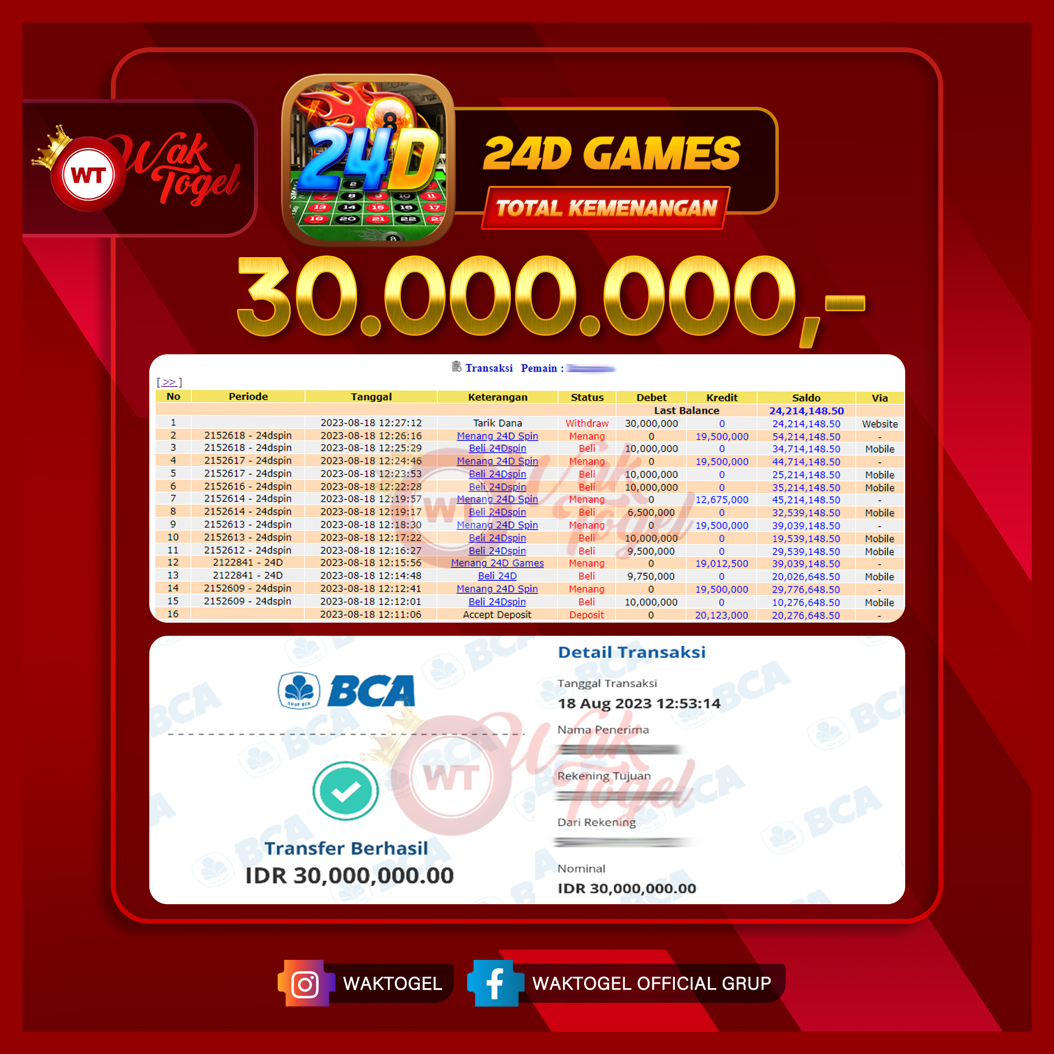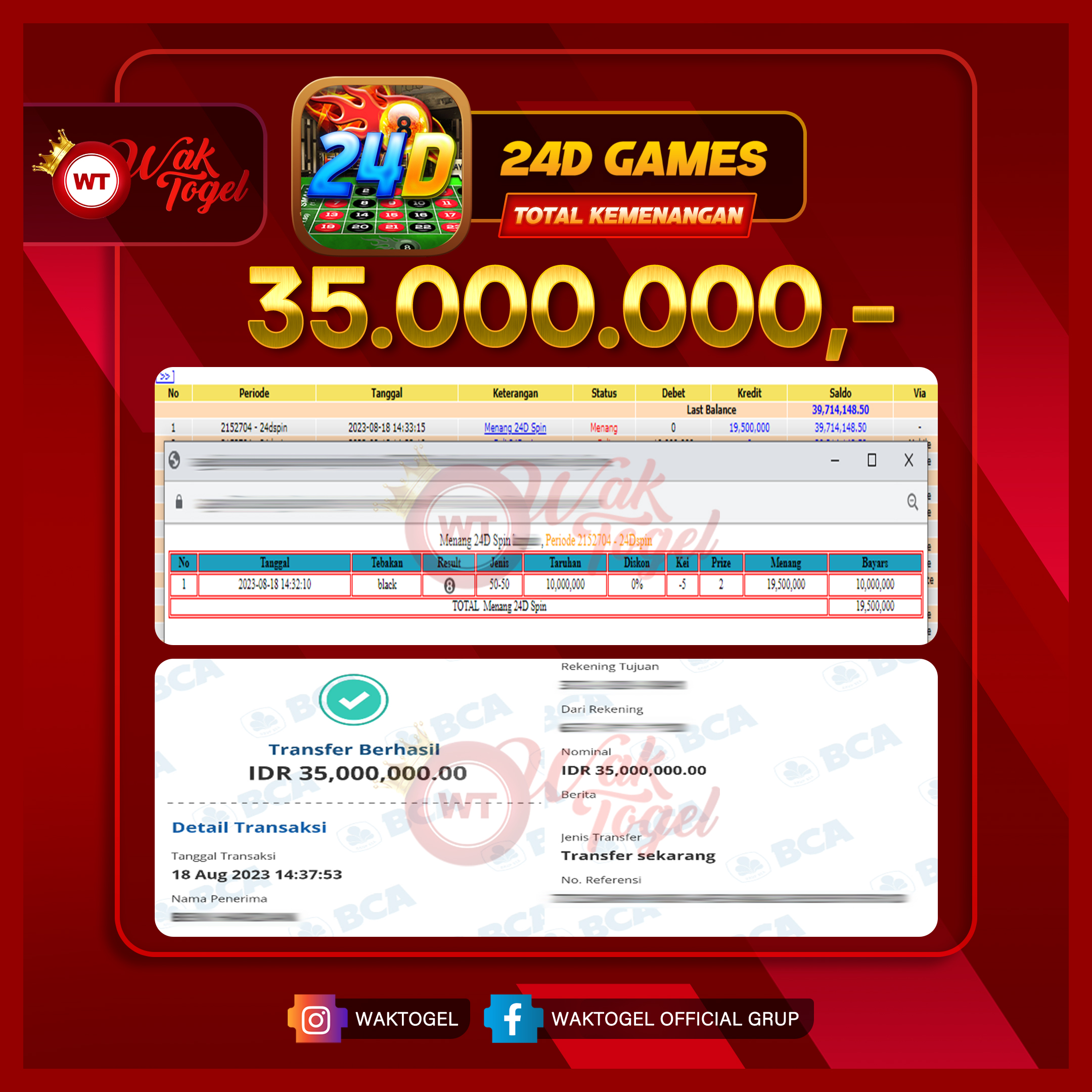 JACKPOT CASINO WAKTOGEL BUKTI PEMBAYARAN 24D WAKTOGEL By JPWT Agustus 19, 2023 0 comments 2 min read BUKTI PEMBAYARAN 24D WAKTOGEL BUKTI PEMBAYARAN 24D WAKTOGEL RP. 35.000.000 – GAME : CASINO 24D TANGGAL (USER ID : K****O) |18-08-2023| CASH LUNAS ! Kami […]