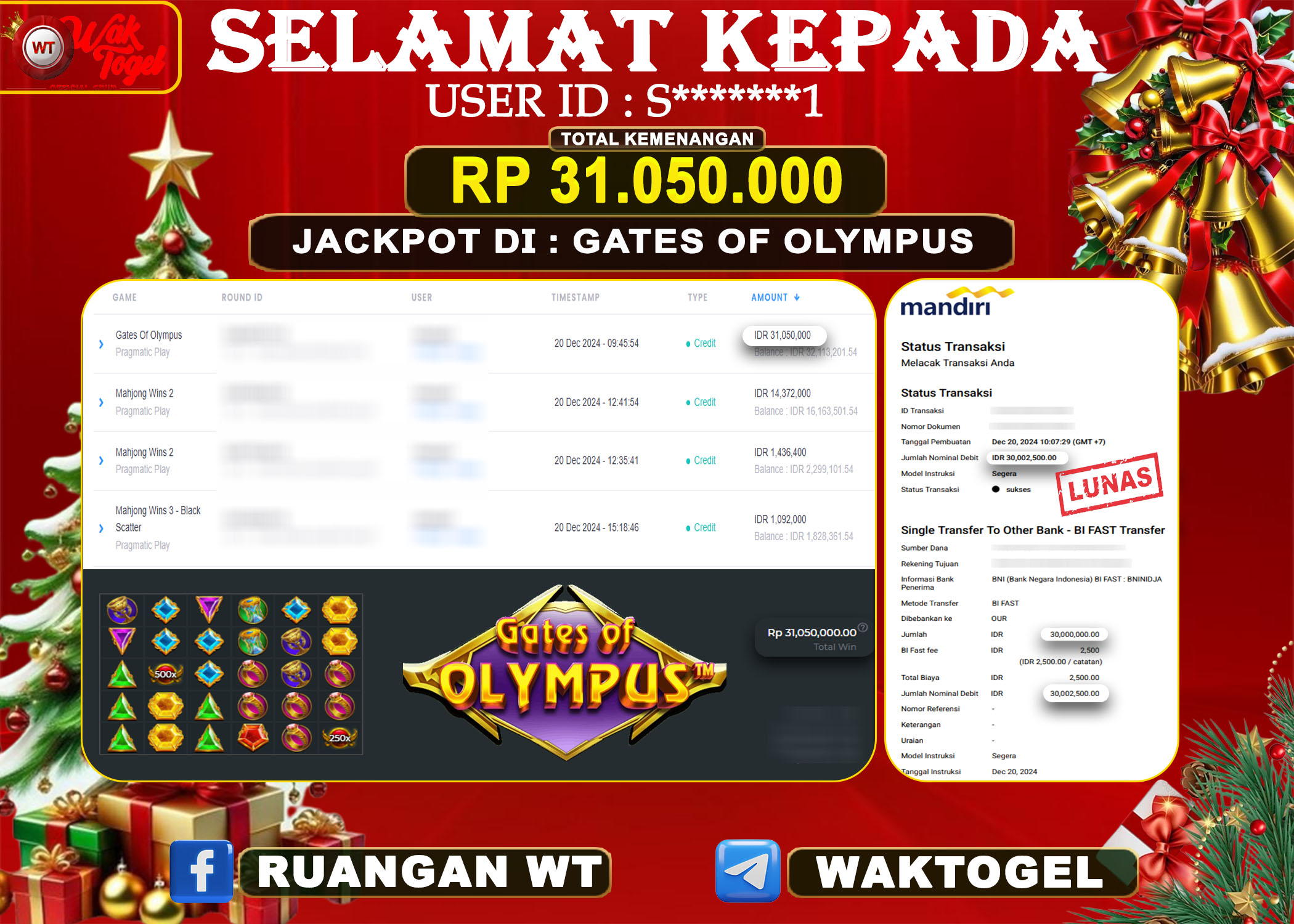 JACKPOT SLOT WAKTOGEL BUKTI PEMBAYARAN SLOT WAKTOGEL By JPWT Januari 2, 2025 0 comments 2 min read BUKTI PEMBAYARAN SLOT WAKTOGEL BUKTI PEMBAYARAN SLOT WAKTOGEL RP. 100.000.000 – GAME : SLOT GATES OF OLYMPUS (USER ID : R**********1) TANGGAL |01-01-2025| CASH LUNAS […]