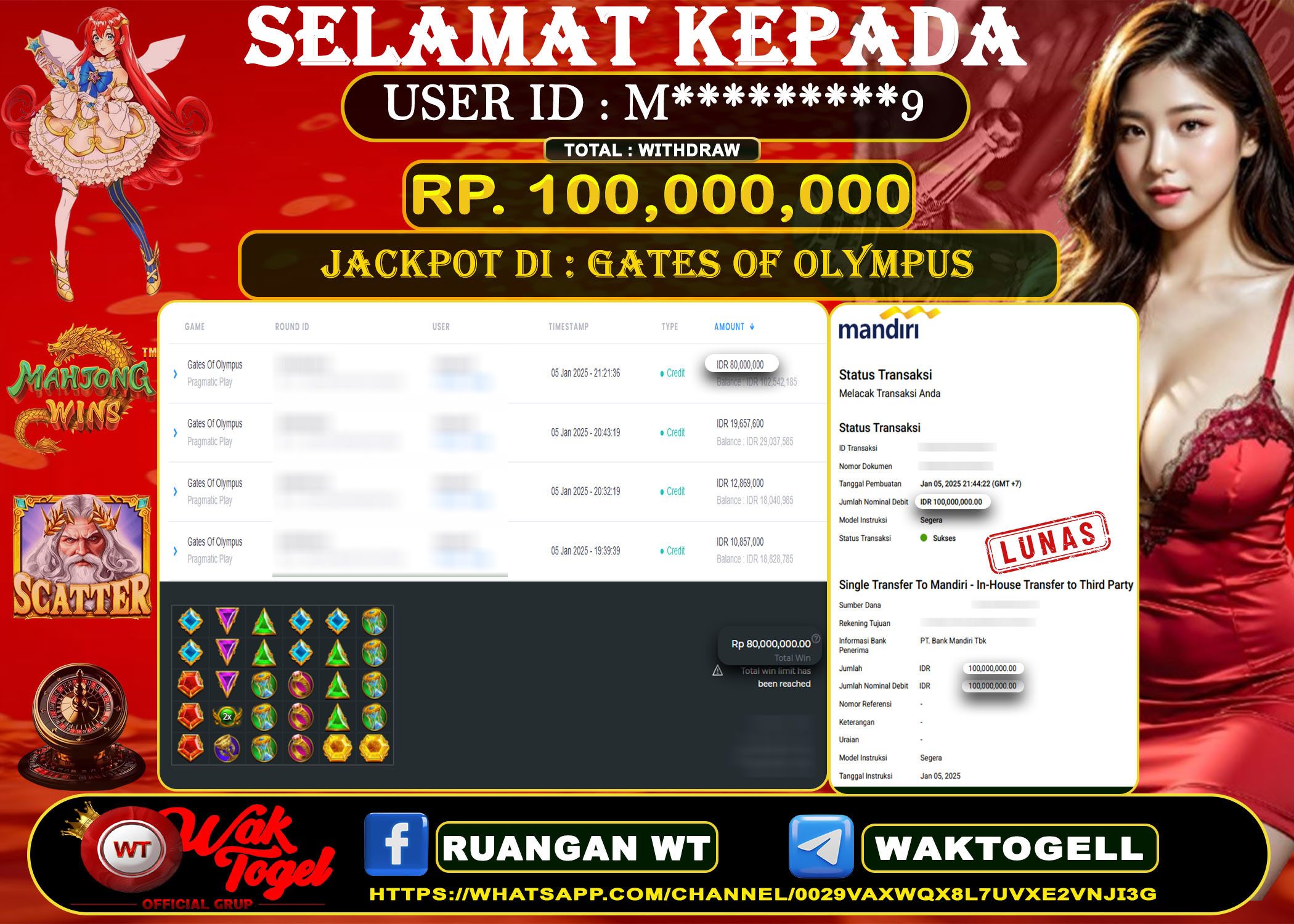 JACKPOT SLOT WAKTOGEL BUKTI PEMBAYARAN SLOT WAKTOGEL By JPWT Januari 16, 2025 0 comments 2 min read BUKTI PEMBAYARAN SLOT WAKTOGEL BUKTI PEMBAYARAN SLOT WAKTOGEL RP. 100.000.000 – GAME : SLOT GATES OF OLYMPUS (USER ID : K*******1) TANGGAL |15-01-2025| CASH LUNAS […]