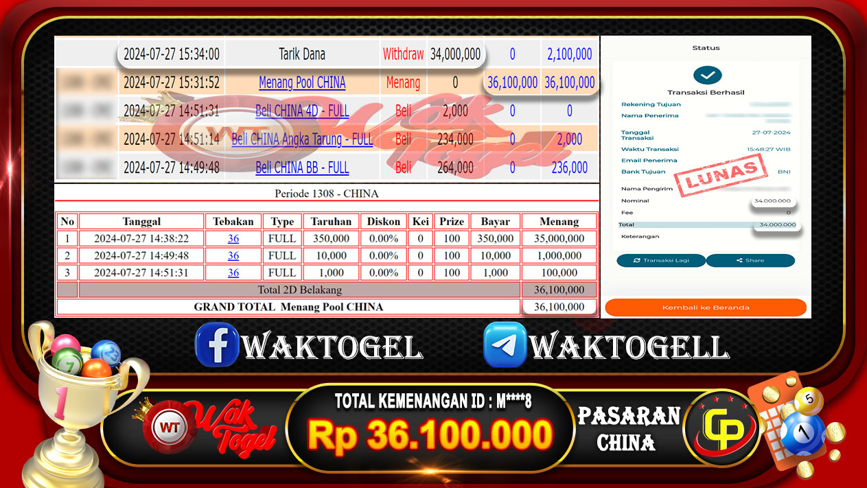 BUKTI PEMBAYARAN CHINA WAKTOGEL BUKTI PEMBAYARAN CHINA WAKTOGEL RP. 36.100.000 – GAME : TOGEL CHINA POOLS (USER ID : M****8) TANGGAL |27-07-2024| CASH LUNAS ! […]