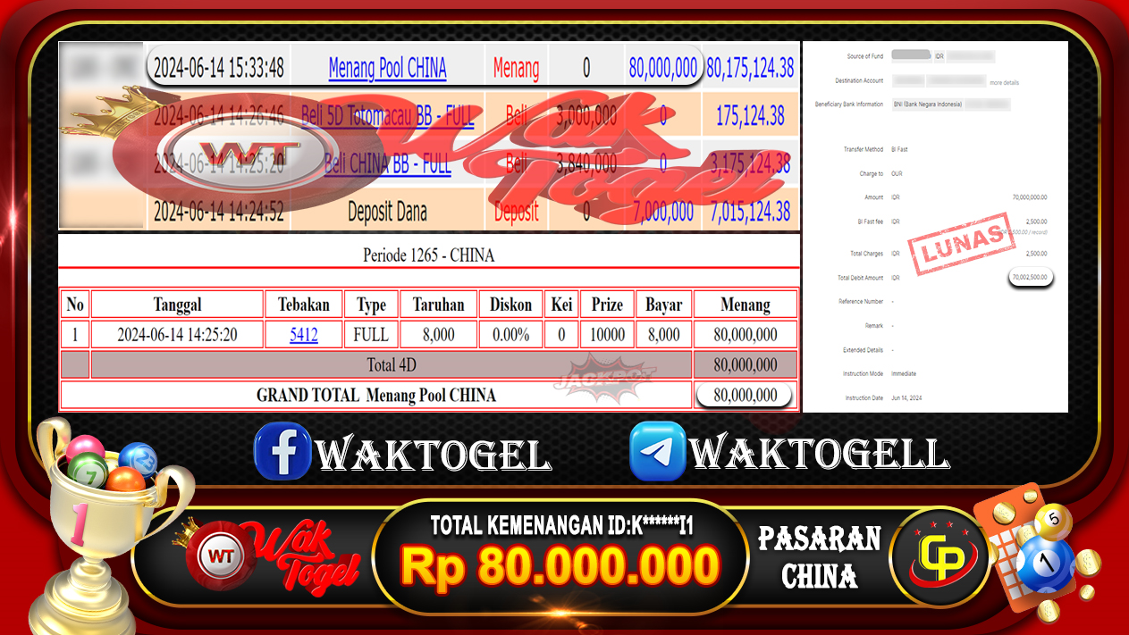 BUKTI PEMBAYARAN CHINA WAKTOGEL BUKTI PEMBAYARAN CHINA WAKTOGEL RP. 80.000.000 – GAME : TOGEL CHINA POOLSÂ (USER ID : K******I1) TANGGAL |14-06-2024| CASH LUNAS ! […]