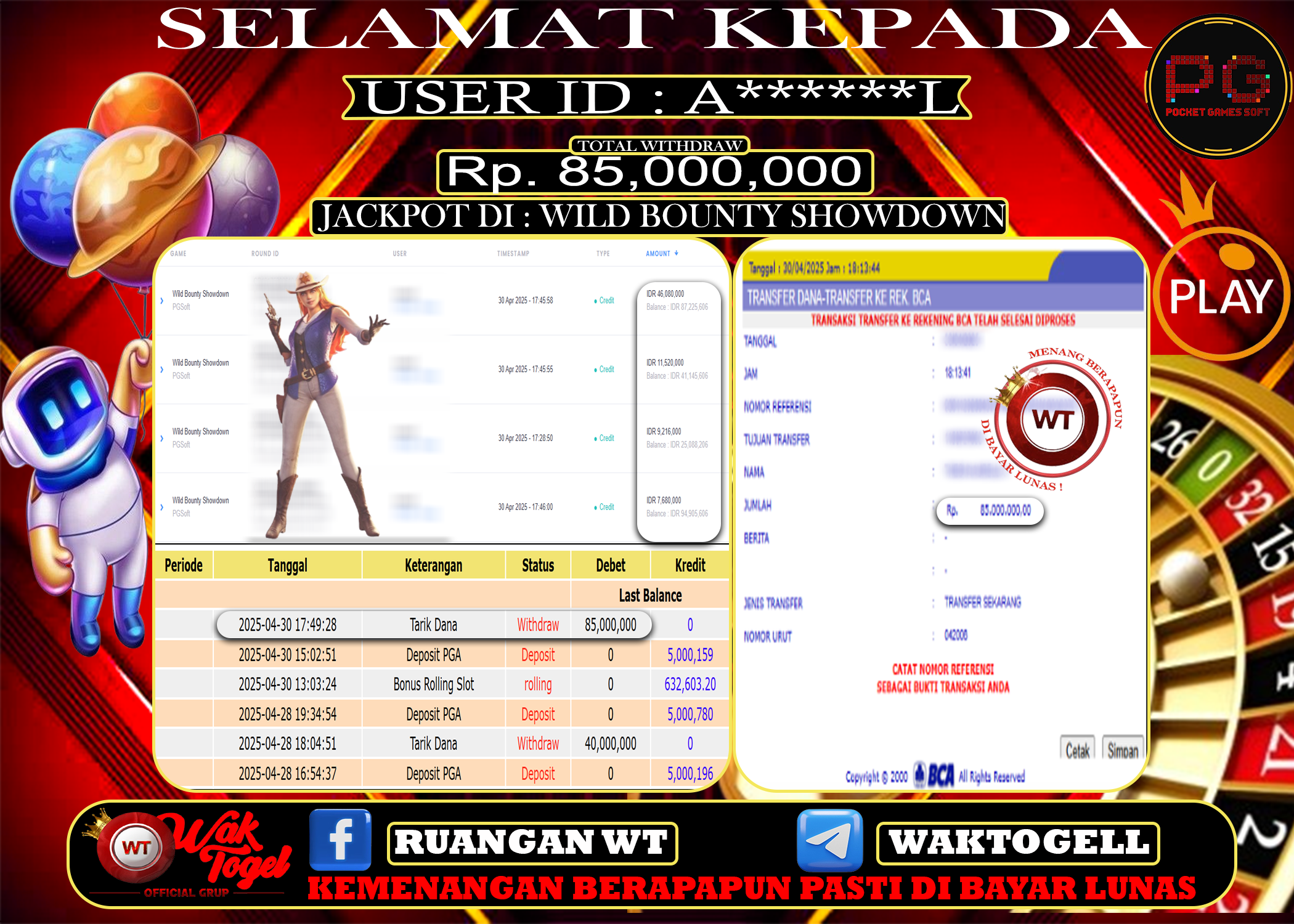 JACKPOT SLOT WAKTOGEL BUKTI PEMBAYARAN SLOT WAKTOGEL By JPWT April 30, 2025 0 comments 2 min read BUKTI PEMBAYARAN SLOT WAKTOGEL BUKTI PEMBAYARAN SLOT WAKTOGEL RP. 85,000,000 – GAME : SLOT WILD BOUNTY SHOWDOWN (USER ID : A******L) TANGGAL |29-04-2025| CASH LUNAS […]
