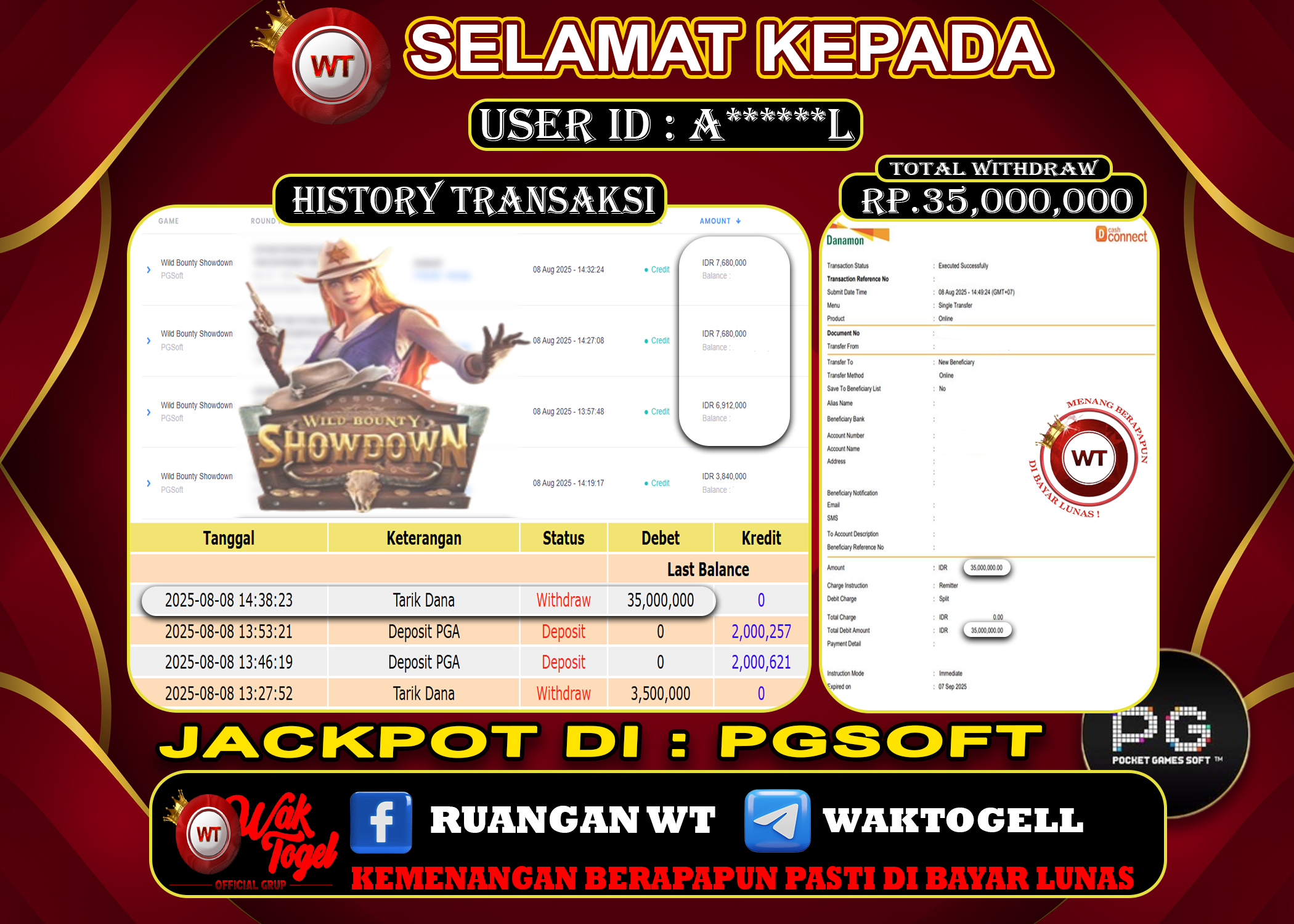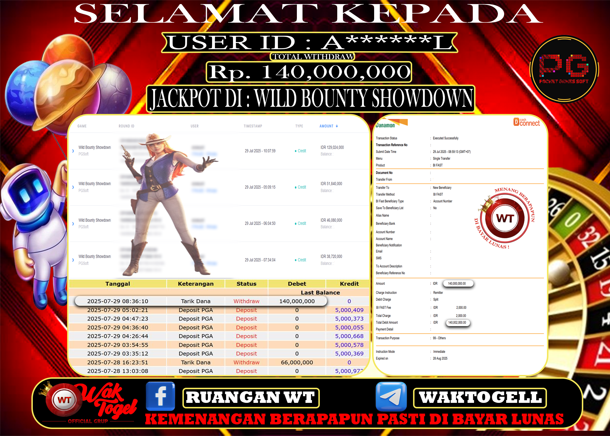 JACKPOT SLOT WAKTOGEL BUKTI PEMBAYARAN SLOT WAKTOGEL By JPWT Juli 29, 2025 0 comments 2 min read BUKTI PEMBAYARAN SLOT WAKTOGEL BUKTI PEMBAYARAN SLOT WAKTOGEL RP. 140,000,000 – GAME : SLOT WILD BOUNTY SHOWDOWN (USER ID : A******L) TANGGAL |29-07-2025| CASH LUNAS […]