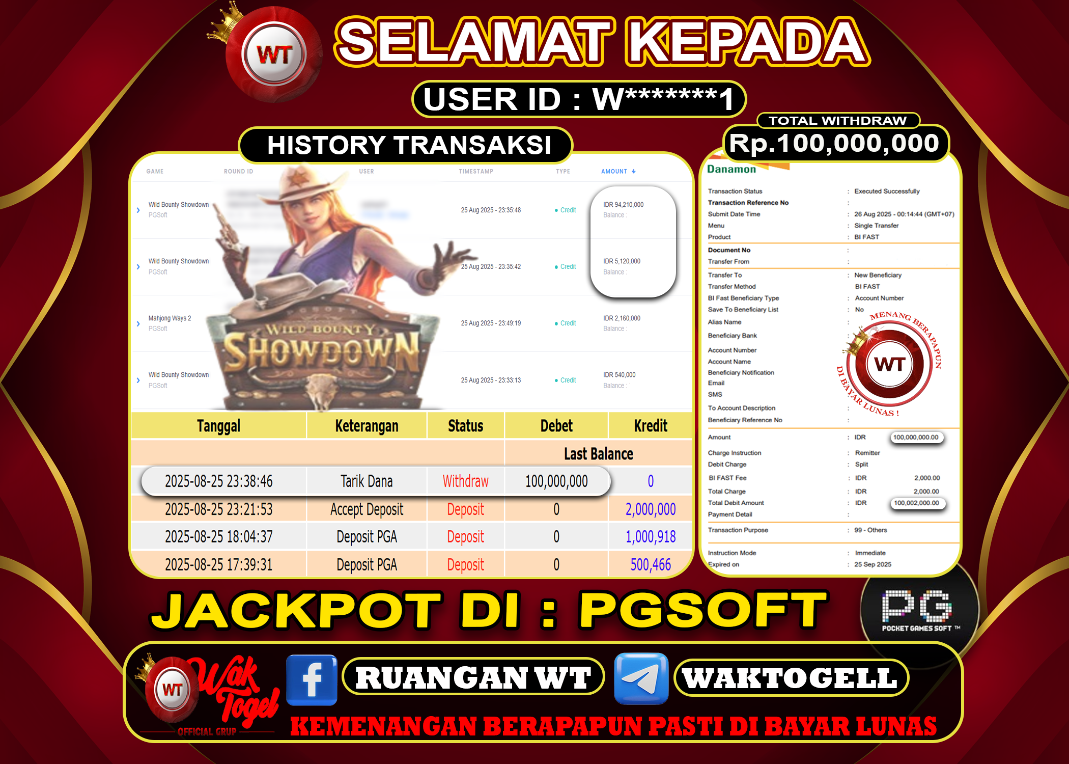 JACKPOT SLOT WAKTOGEL BUKTI PEMBAYARAN SLOT WAKTOGEL By JPWT Agustus 26, 2025 0 comments 2 min read BUKTI PEMBAYARAN SLOT WAKTOGEL BUKTI PEMBAYARAN SLOT WAKTOGEL RP. 100,000,000 – GAME : SLOT WILD BOUNTY SHOWDOWN (USER ID : W*******1) TANGGAL |25-08-2025| CASH LUNAS […]