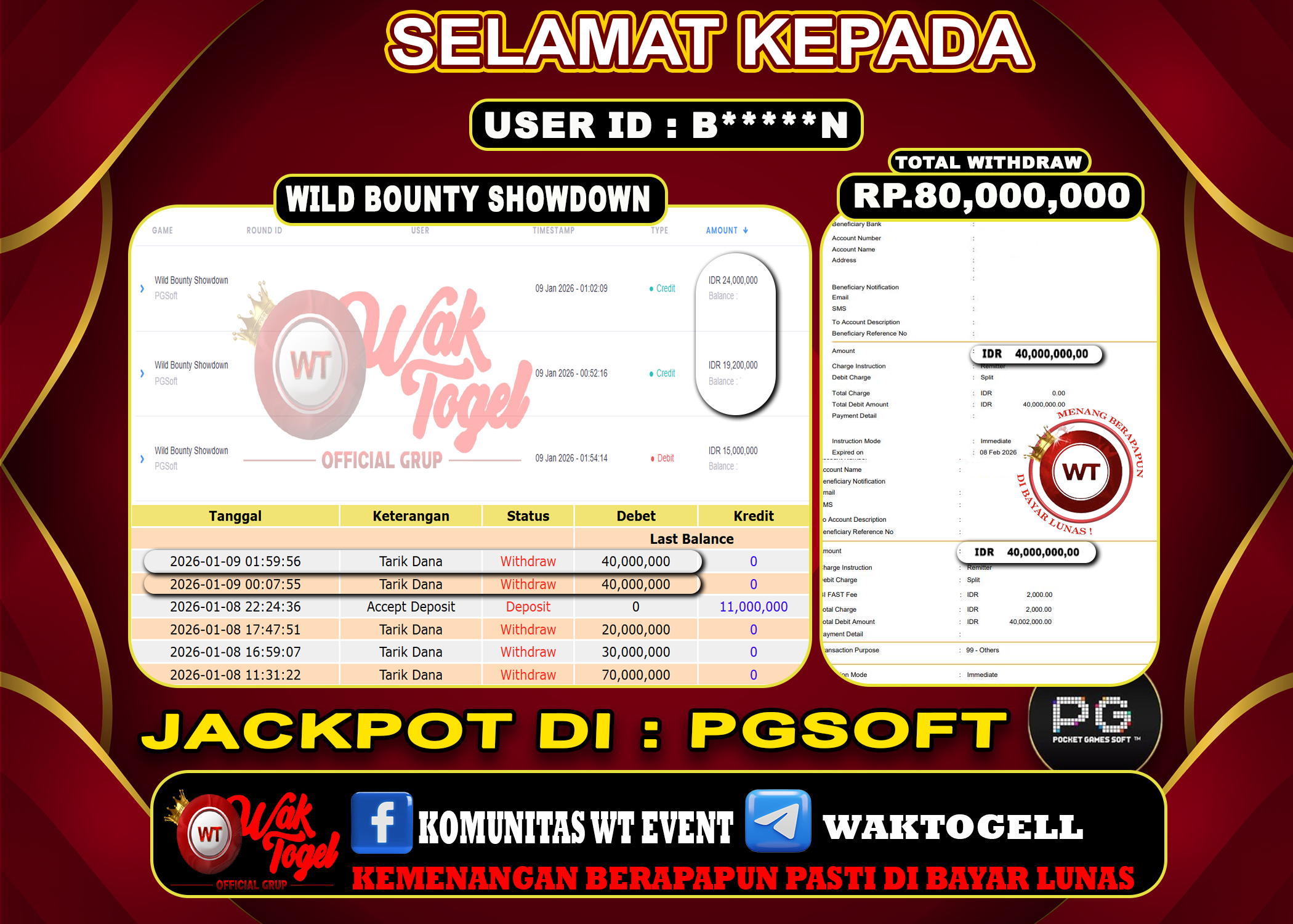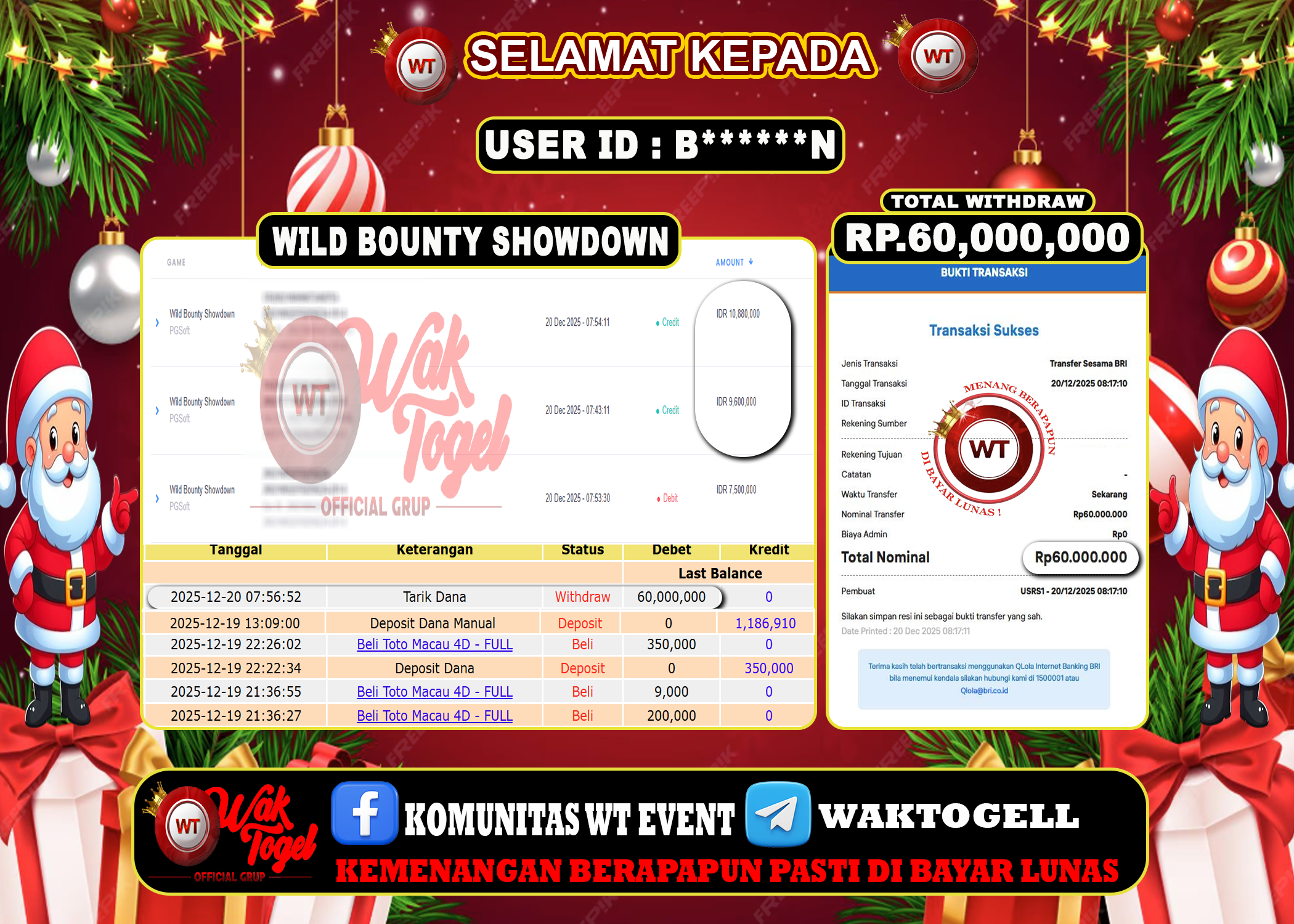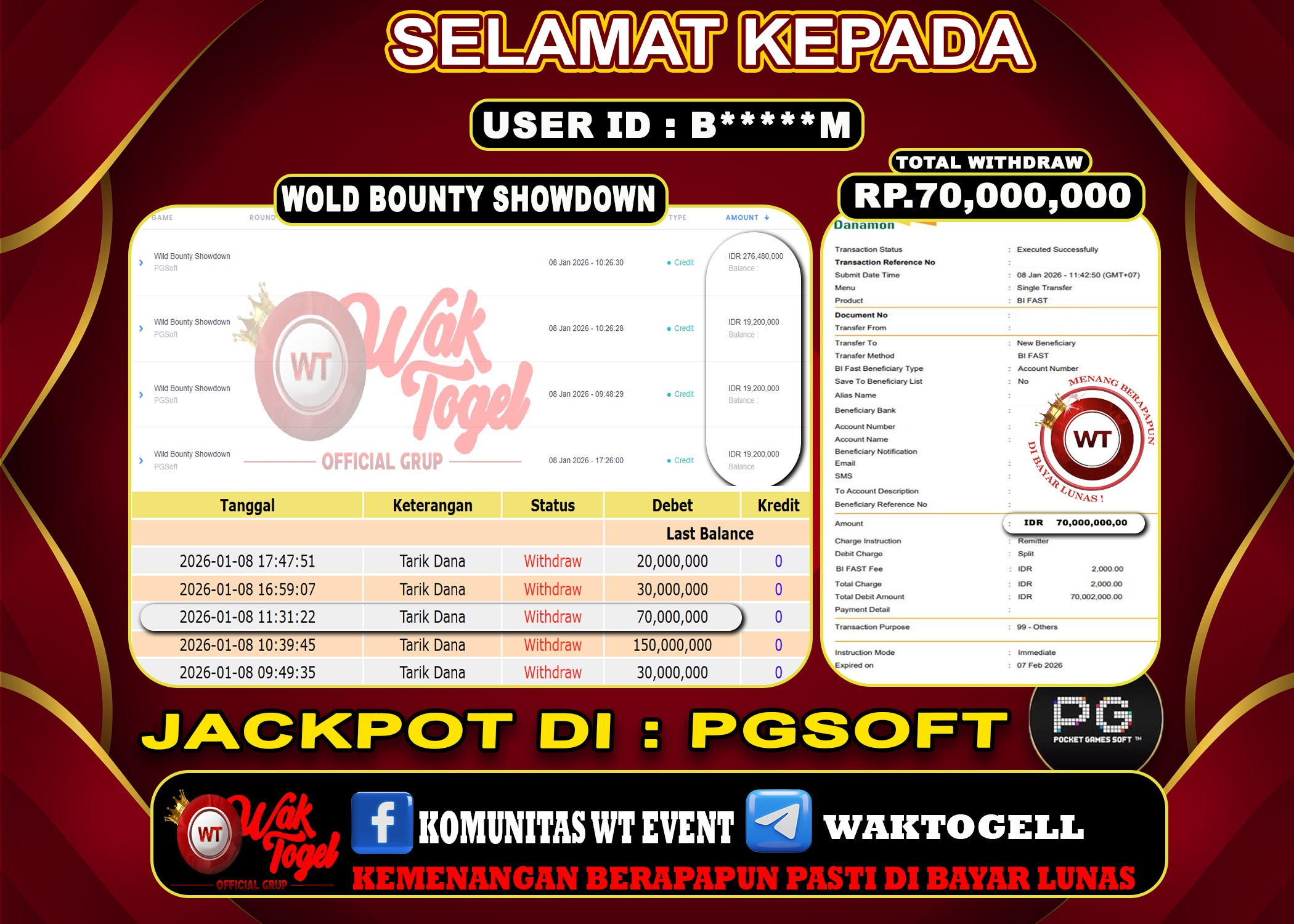 JACKPOT SLOT WAKTOGEL BUKTI PEMBAYARAN SLOT WAKTOGEL By JPWT Januari 8, 2026 0 comments 2 min read BUKTI PEMBAYARAN SLOT WAKTOGEL BUKTI PEMBAYARAN SLOT WAKTOGEL RP. 70,000,000 – GAME : SLOT WILD BOUNTY SHOWDOWN (USER ID : B*****M) TANGGAL |08-01-2026| CASH LUNAS […]