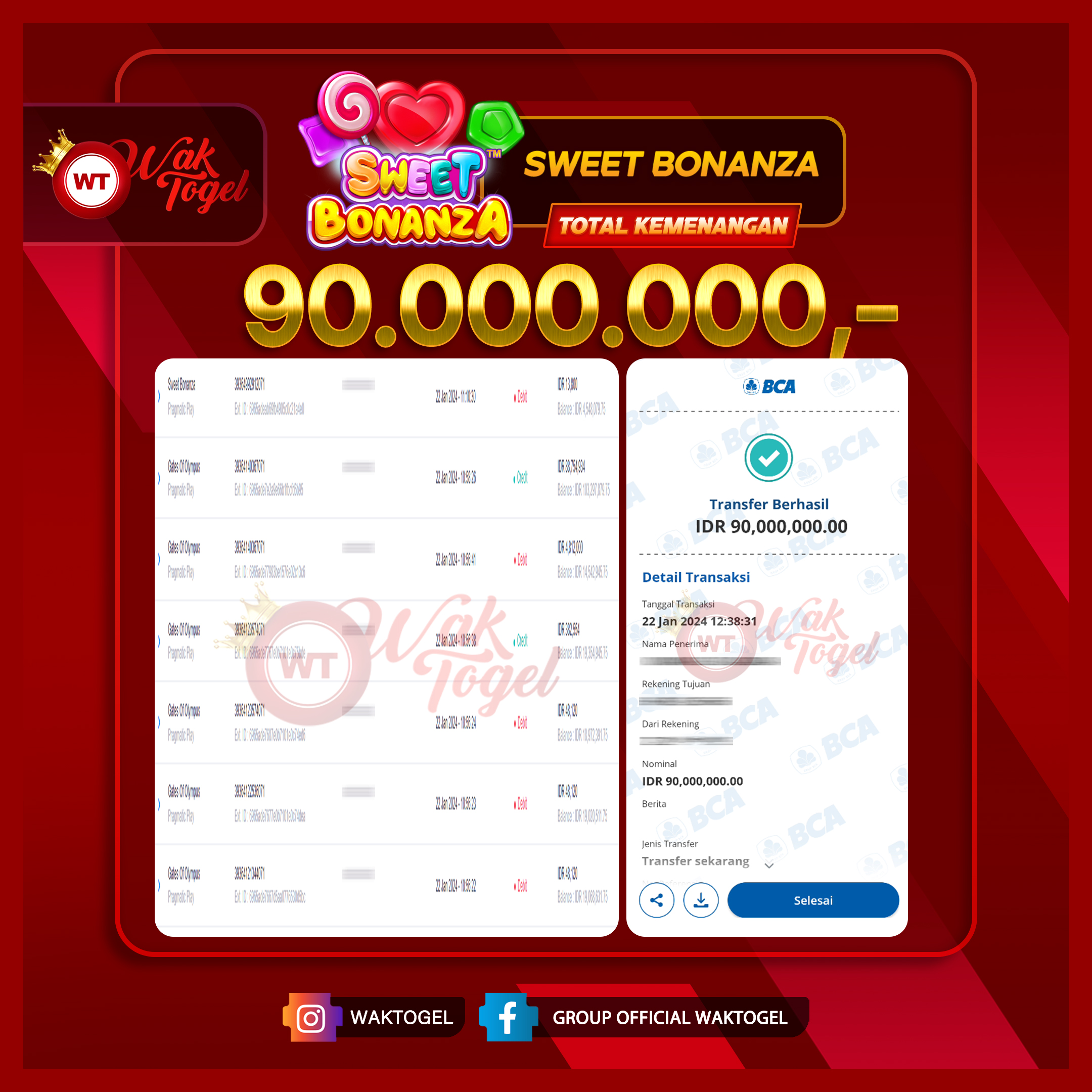 JACKPOT SLOT WAKTOGEL BUKTI PEMBAYARAN SLOT WAKTOGEL By JPWT Januari 23, 2024 0 comments 2 min read BUKTI PEMBAYARAN SLOT WAKTOGEL BUKTI PEMBAYARAN SLOT WAKTOGEL RP. 90.000.000 – GAME : SLOT SWEET BONANZA TANGGAL (USER ID : K*****1) |22-01-2024| CASH LUNAS ! […]