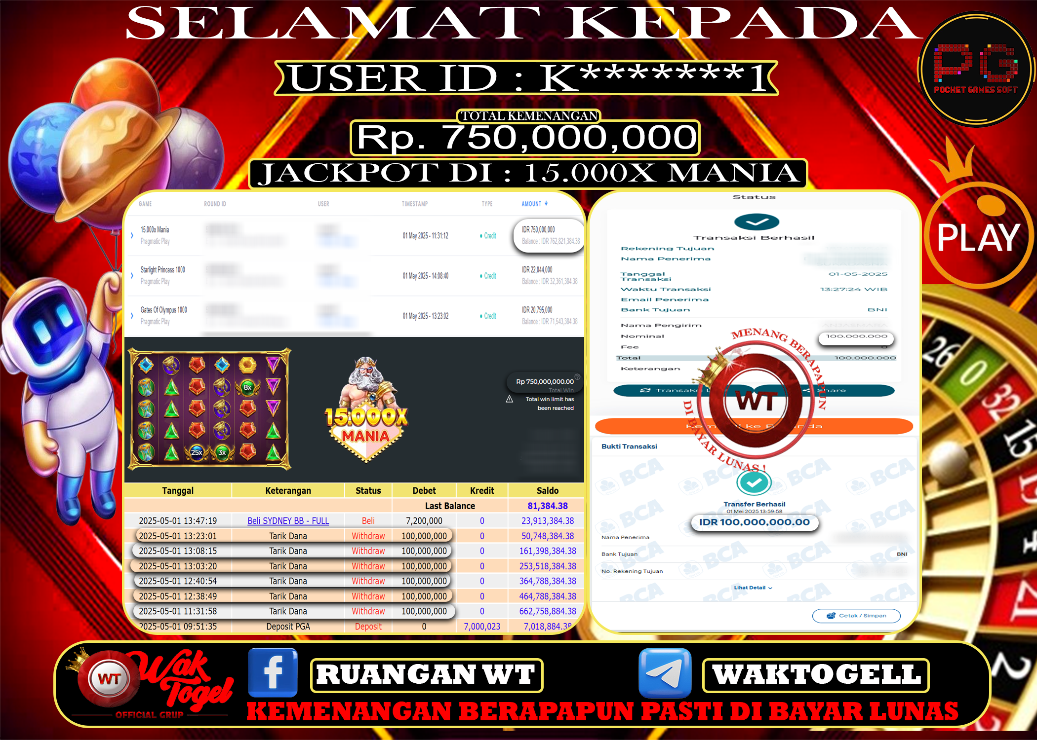 JACKPOT SLOT WAKTOGEL BUKTI PEMBAYARAN SLOT WAKTOGEL By JPWT Mei 1, 2025 0 comments 2 min read BUKTI PEMBAYARAN SLOT WAKTOGEL BUKTI PEMBAYARAN SLOT WAKTOGEL RP. 750,000,000 – GAME : SLOT 15.000X MANIA (USER ID : K*******1) TANGGAL |01-05-2025| CASH LUNAS ! […]