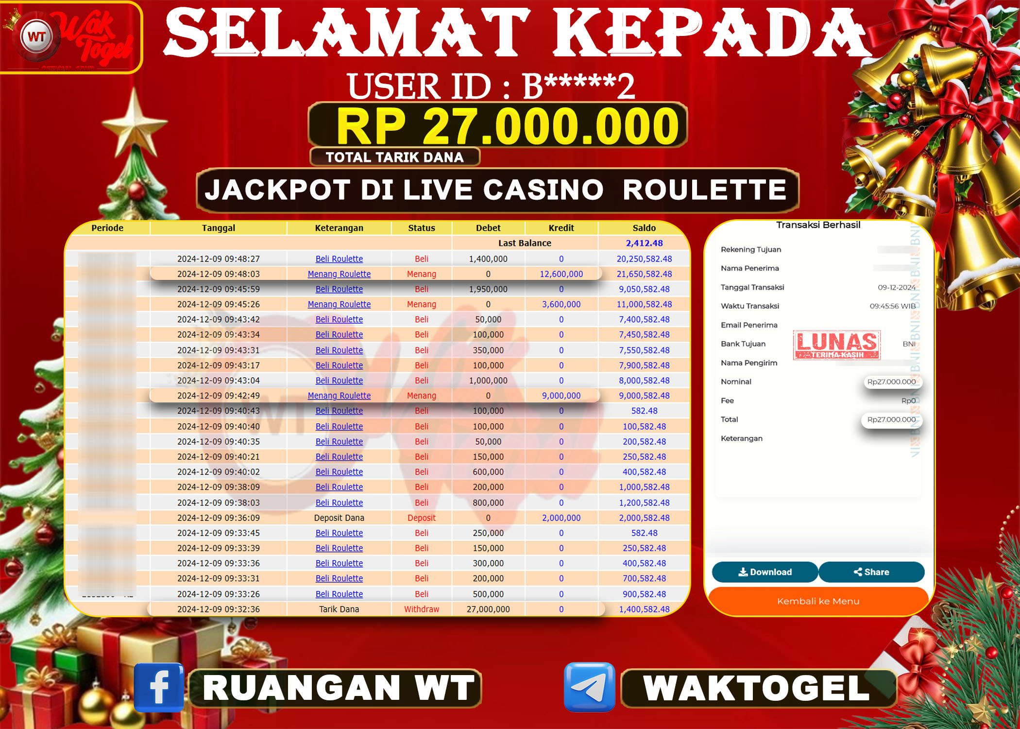 JACKPOT CASINO WAKTOGEL BUKTI PEMBAYARAN ROULETTE WAKTOGEL By JPWT November 27, 2024 0 comments 2 min read BUKTI PEMBAYARAN ROULETTE WAKTOGEL BUKTI PEMBAYARAN ROULETTE WAKTOGEL RP. 16.900.000 – GAME : ROULETTE (USER ID : D*********2) TANGGAL |27-11-2024| CASH LUNAS ! Kami ucapkan […]