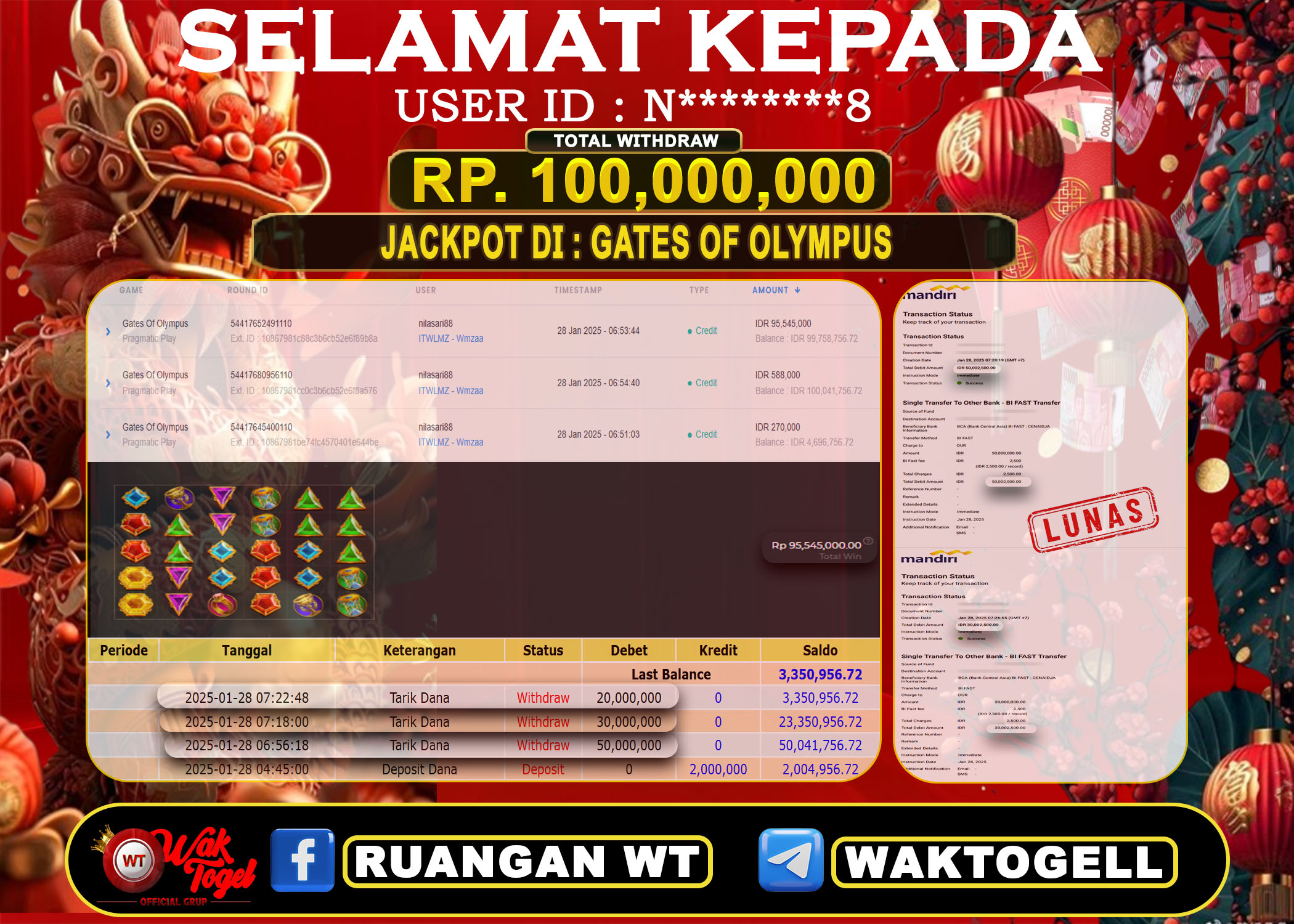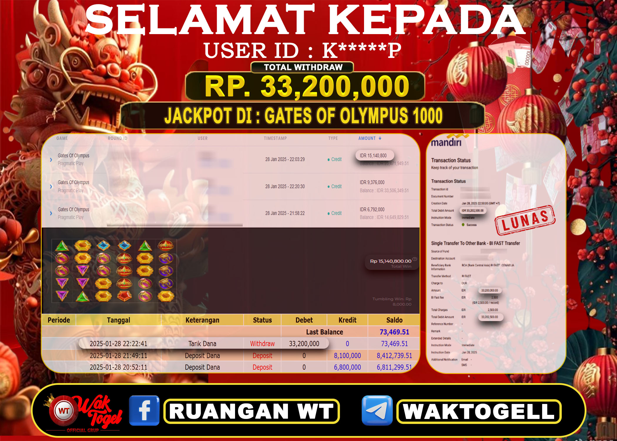JACKPOT SLOT WAKTOGEL BUKTI PEMBAYARAN SLOT WAKTOGEL By JPWT Januari 28, 2025 0 comments 2 min read BUKTI PEMBAYARAN SLOT WAKTOGEL BUKTI PEMBAYARAN SLOT WAKTOGEL RP. 100,000,000 – GAME : SLOT GATES OF OLYMPUS (USER ID : N********8) TANGGAL |28-01-2025| CASH LUNAS […]