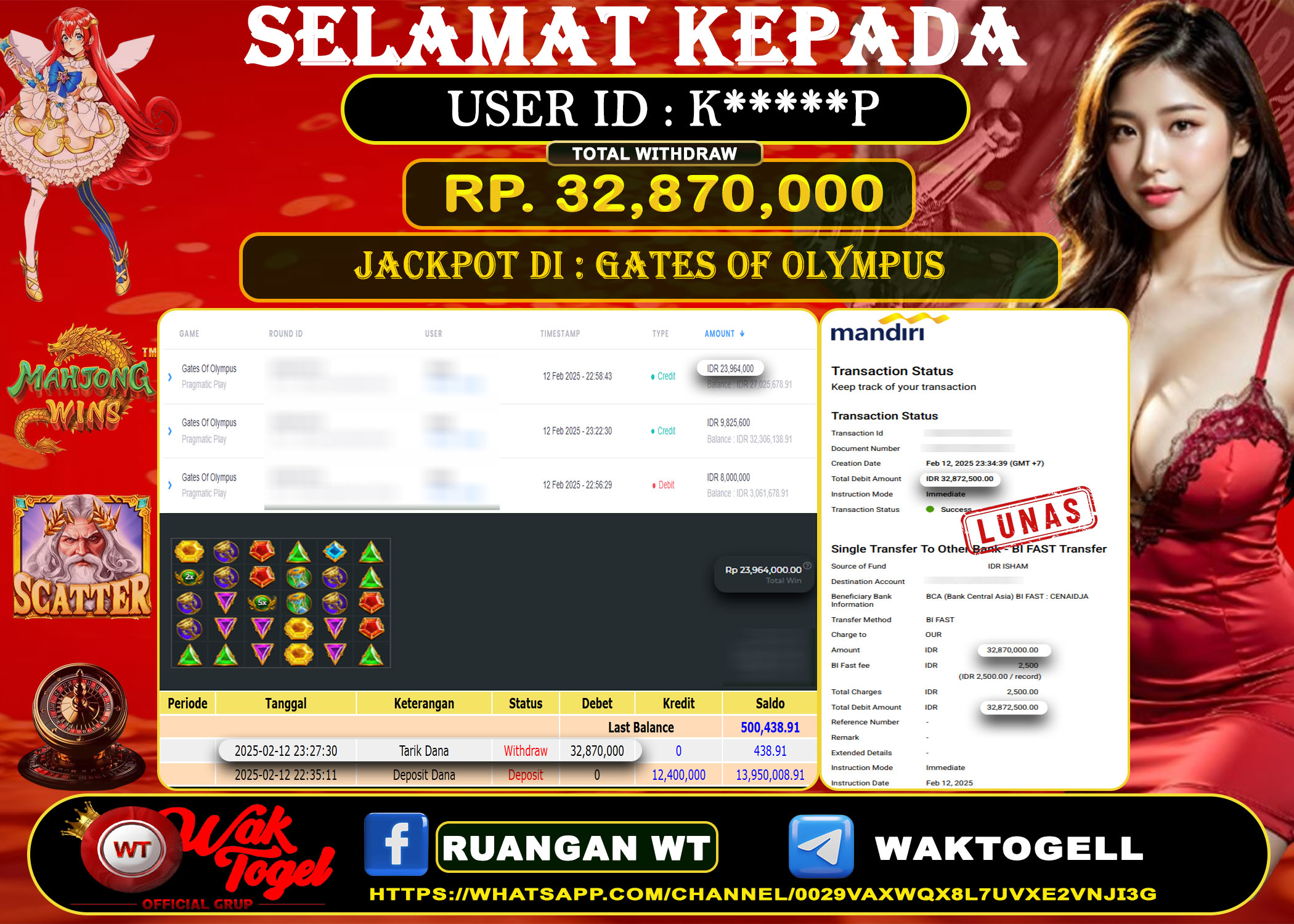 JACKPOT SLOT WAKTOGEL BUKTI PEMBAYARAN SLOT WAKTOGEL By JPWT Februari 13, 2025 0 comments 2 min read BUKTI PEMBAYARAN SLOT WAKTOGEL BUKTI PEMBAYARAN SLOT WAKTOGEL RP. 32,870,000 – GAME : SLOT GATES OF OLYMPUS 1000 (USER ID : K*****P) TANGGAL |12-02-2025| CASH […]