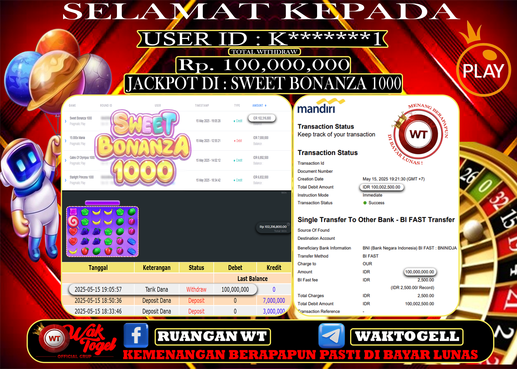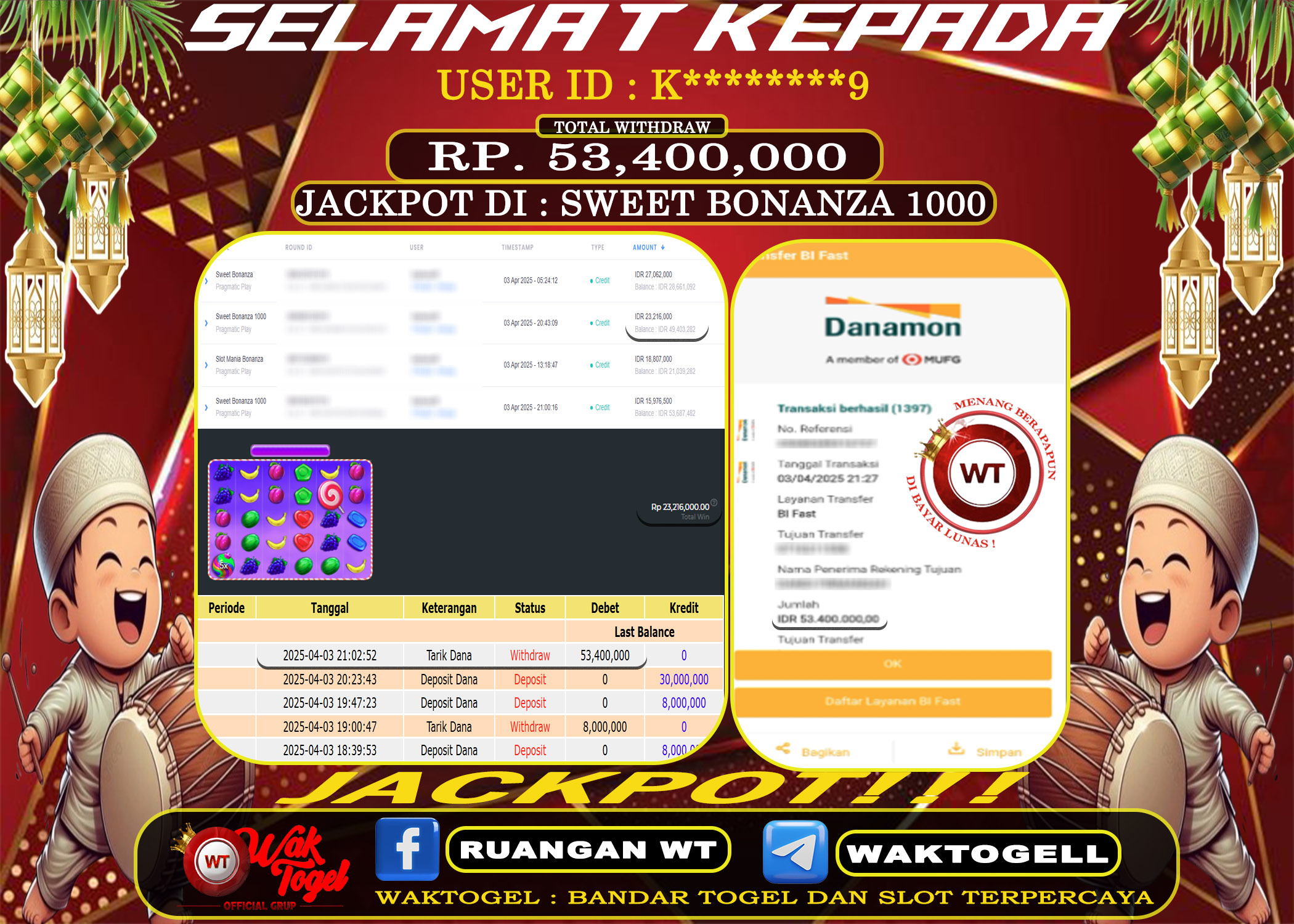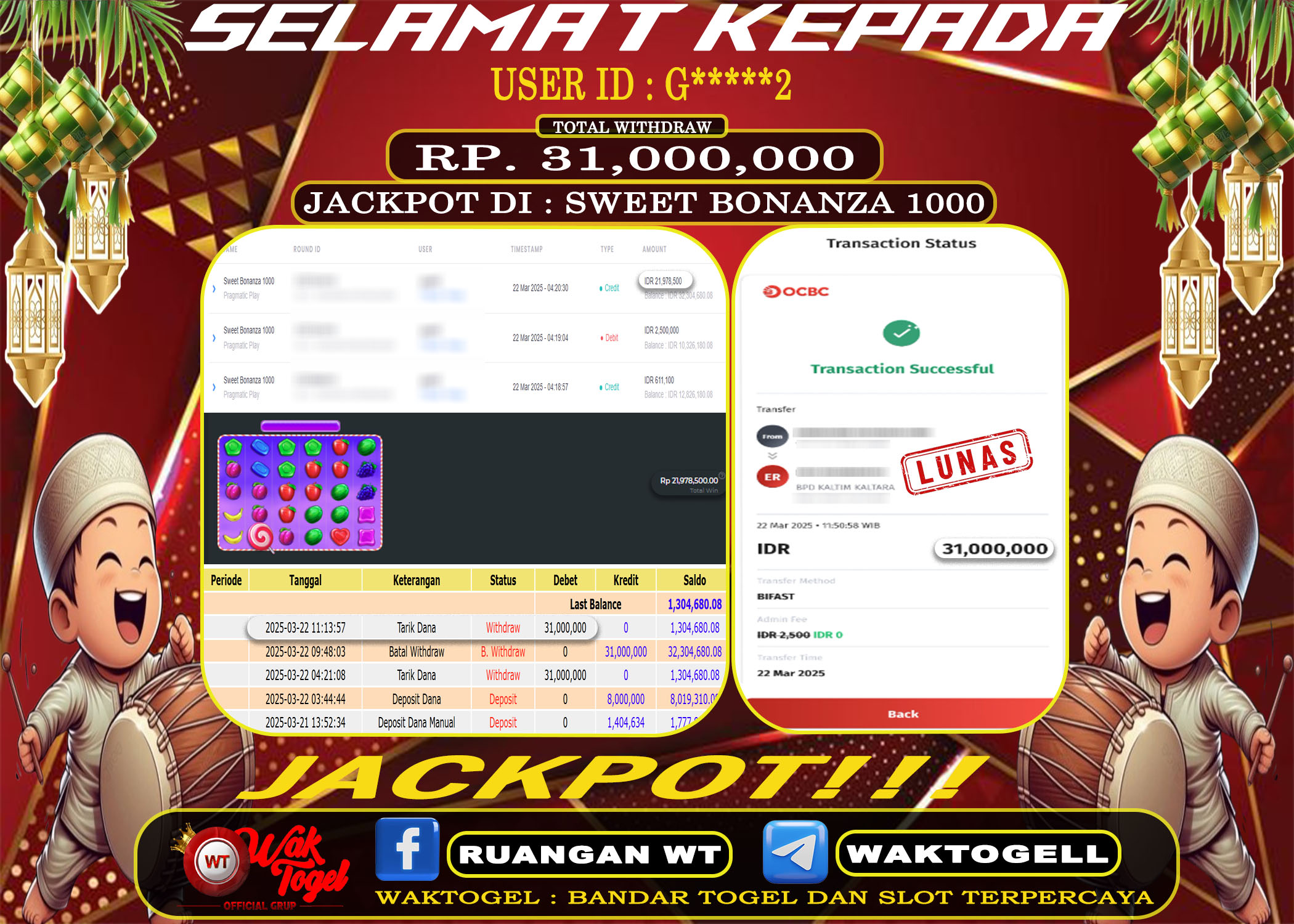 Bukti Pembayaran Jackpot Waktogel Untuk SLOT, TOGEL , LIVECASINO