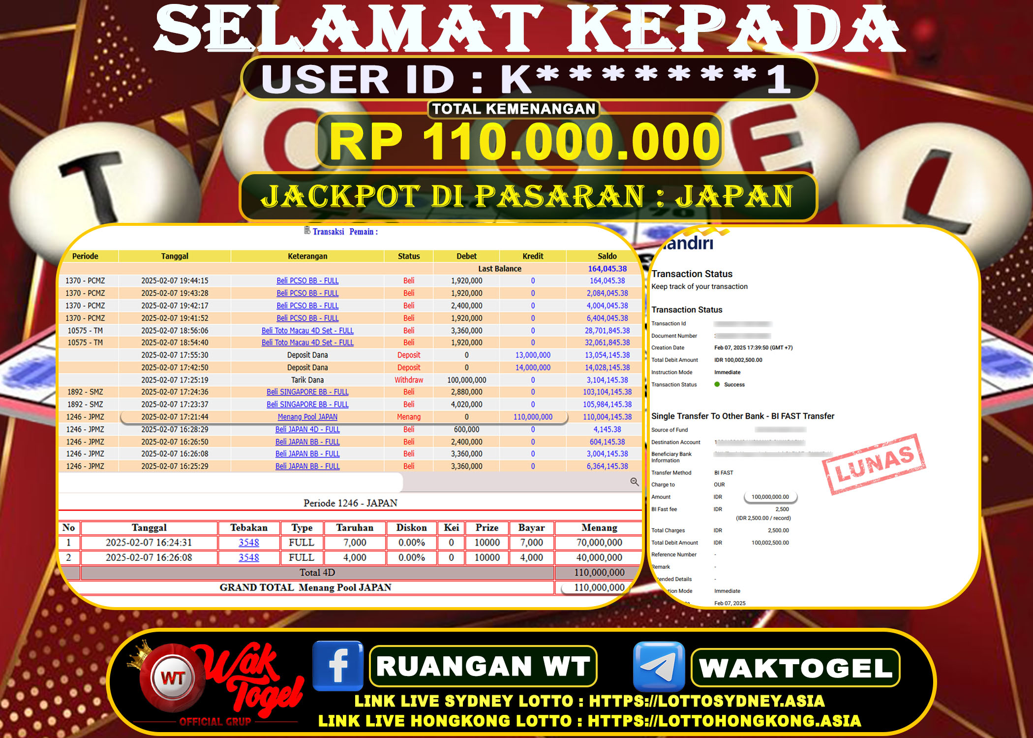 BUKTI PEMBAYARAN JAPAN WAKTOGEL BUKTI PEMBAYARAN JAPAN WAKTOGEL RP. 102,150,000 – GAME : TOGEL JAPAN POOLS (USER ID : M*****1) TANGGAL |07-04-2025| CASH LUNAS ! […]