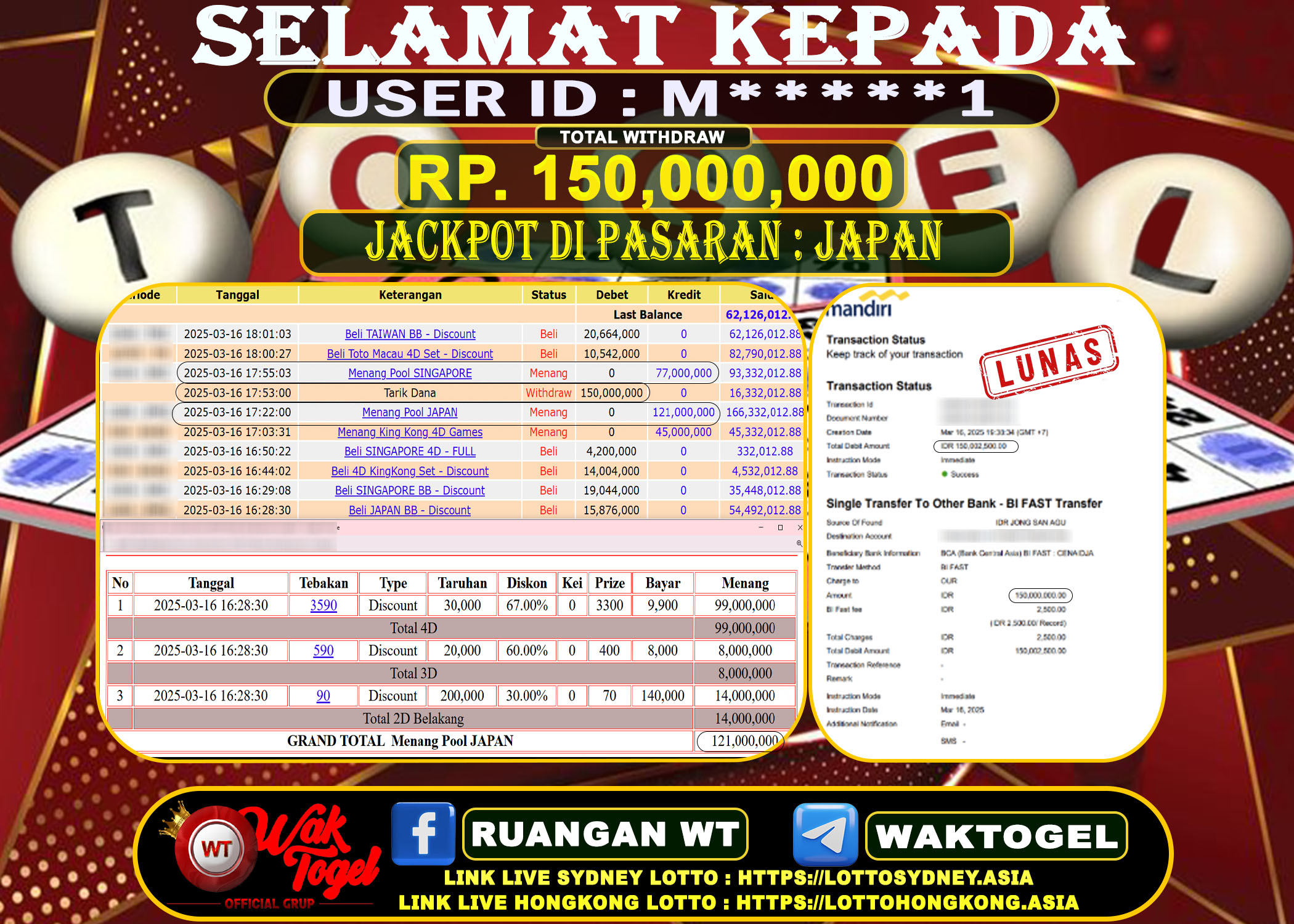 BUKTI PEMBAYARAN JAPAN WAKTOGEL BUKTI PEMBAYARAN JAPAN WAKTOGEL RP. 150,000,000 – GAME : TOGEL JAPAN POOLS (USER ID : M*****1) TANGGAL |16-03-2025| CASH LUNAS ! […]