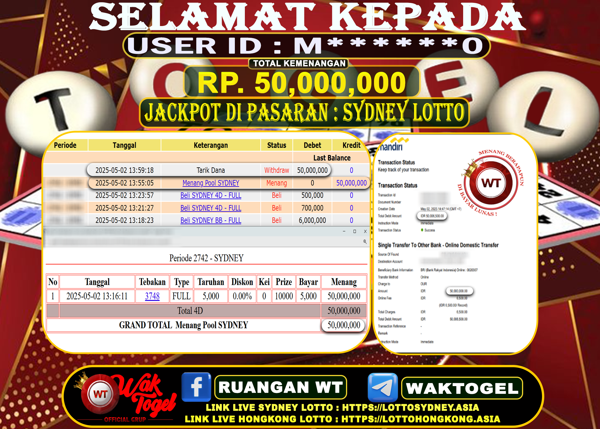 BUKTI PEMBAYARAN SYDNEY WAKTOGEL BUKTI PEMBAYARAN SYDNEY LOTTO WAKTOGEL RP. 50,000,000 – GAME : TOGEL SYDNEY LOTTO POOLS (USER ID : M******0) TANGGAL |02-05-2025| CASH […]