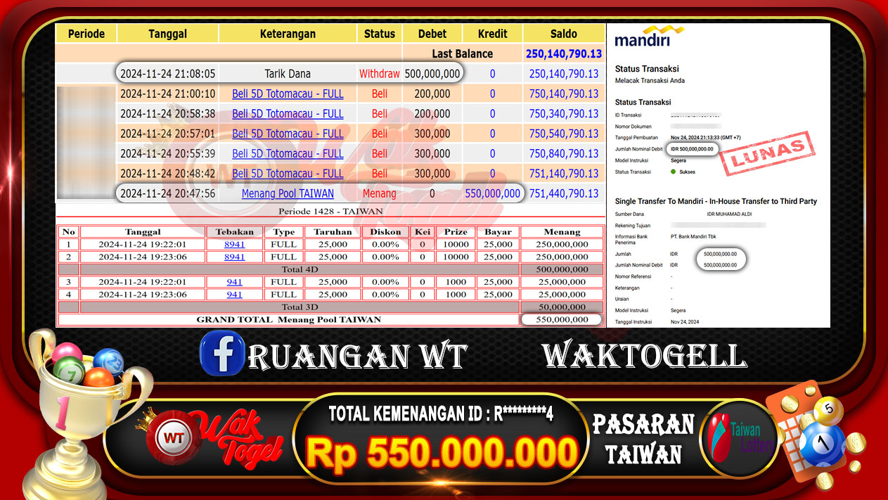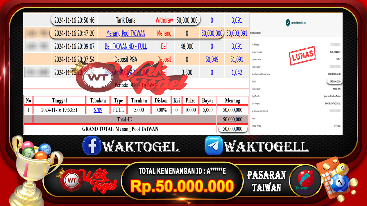 BUKTI PEMBAYARAN TAIWAN WAKTOGEL BUKTI PEMBAYARAN TAIWAN WAKTOGEL RP. 50.000.000 – GAME : TOGEL TAIWAN POOLS  (USER ID : A******E)TANGGAL|16-11-2024| CASH LUNAS ! Kami ucapkan […]