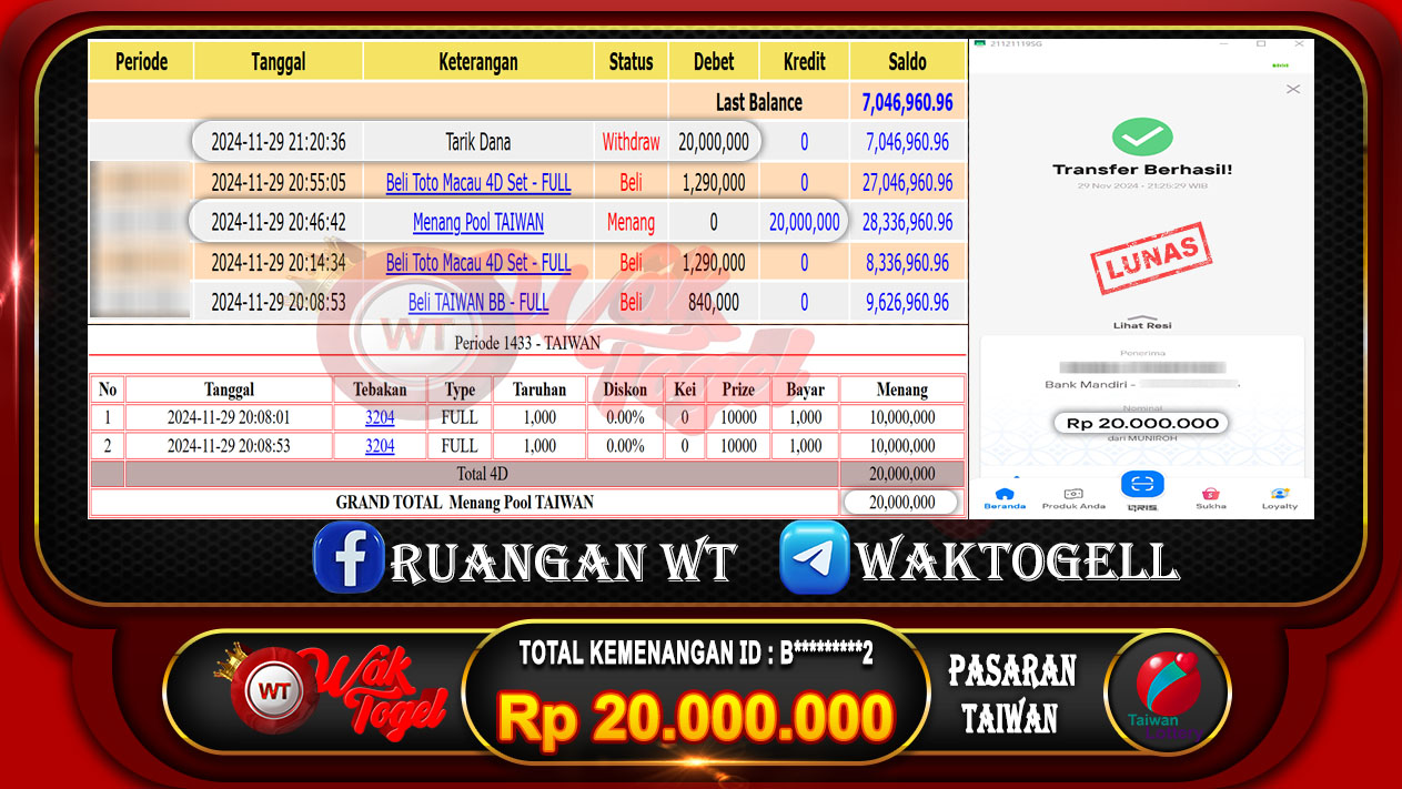 Tagged bukti jackpot waktogel, bukti jp taiwan, bukti jp waktogel, bukti pembayaran WAKTOGEL, togel taiwanLeave a Comment on BUKTI PEMBAYARAN TAIWAN WAKTOGEL