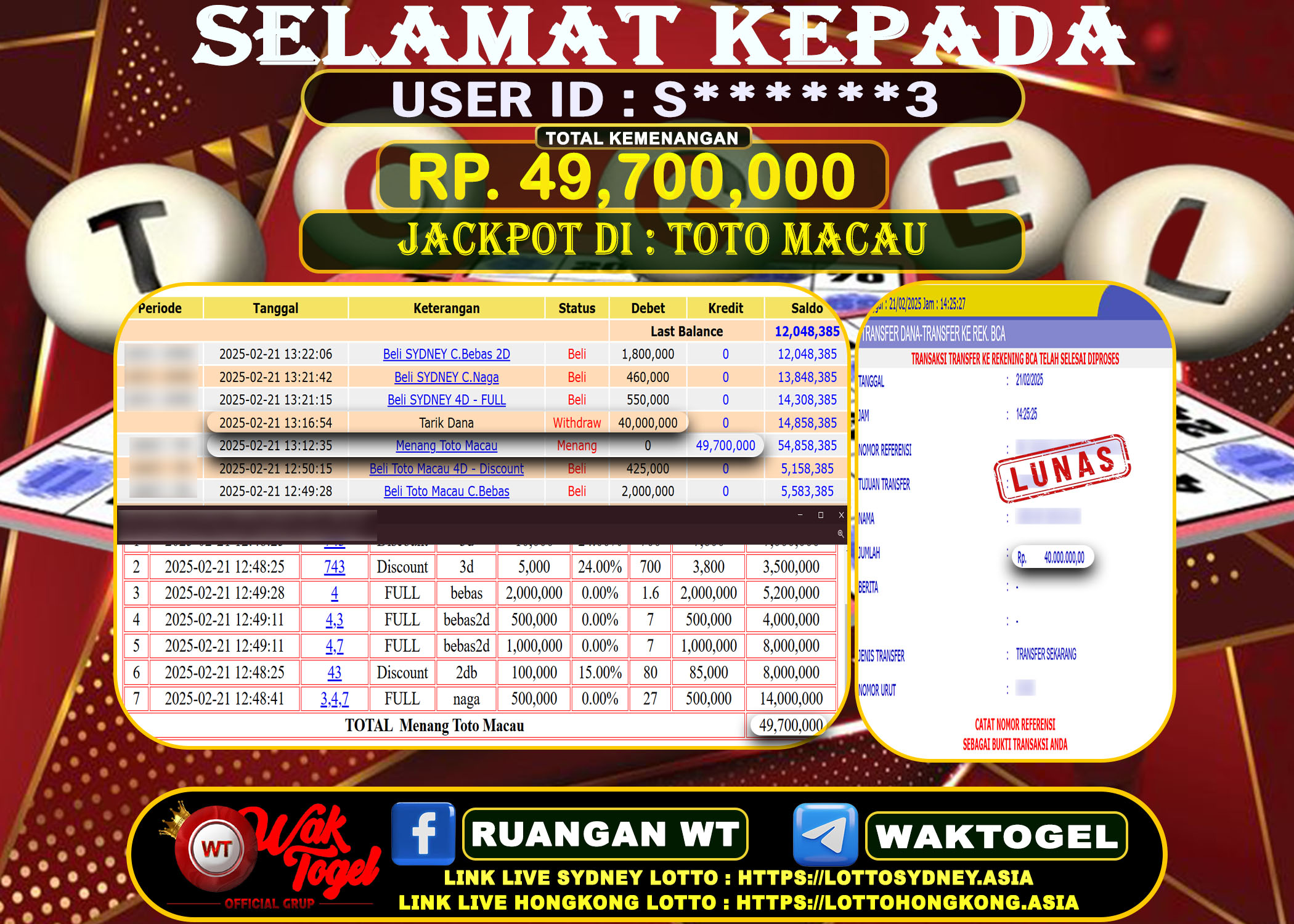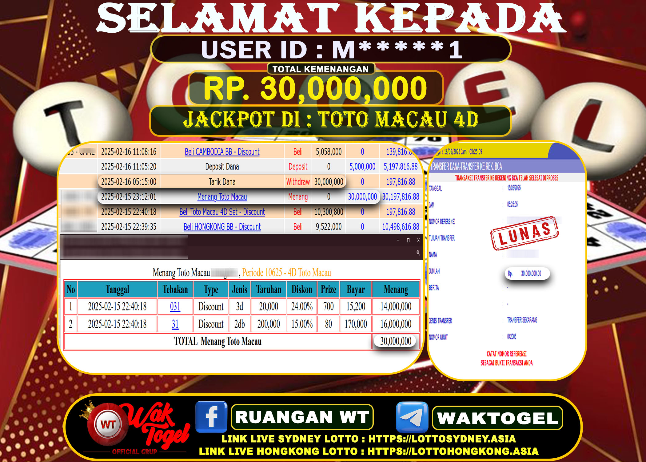JACKPOT TOGEL WAKTOGEL BUKTI PEMBAYARAN TOTO MACAU 4D WAKTOGEL By JPWT Januari 25, 2026 0 comments 2 min read BUKTI PEMBAYARAN TOTO MACAU 4D WAKTOGEL BUKTI PEMBAYARAN TOTO MACAU 4D WAKTOGEL RP. 199,000,000 – GAME : TOGEL TOTO MACAU 4D (USER ID : R*********4) […]