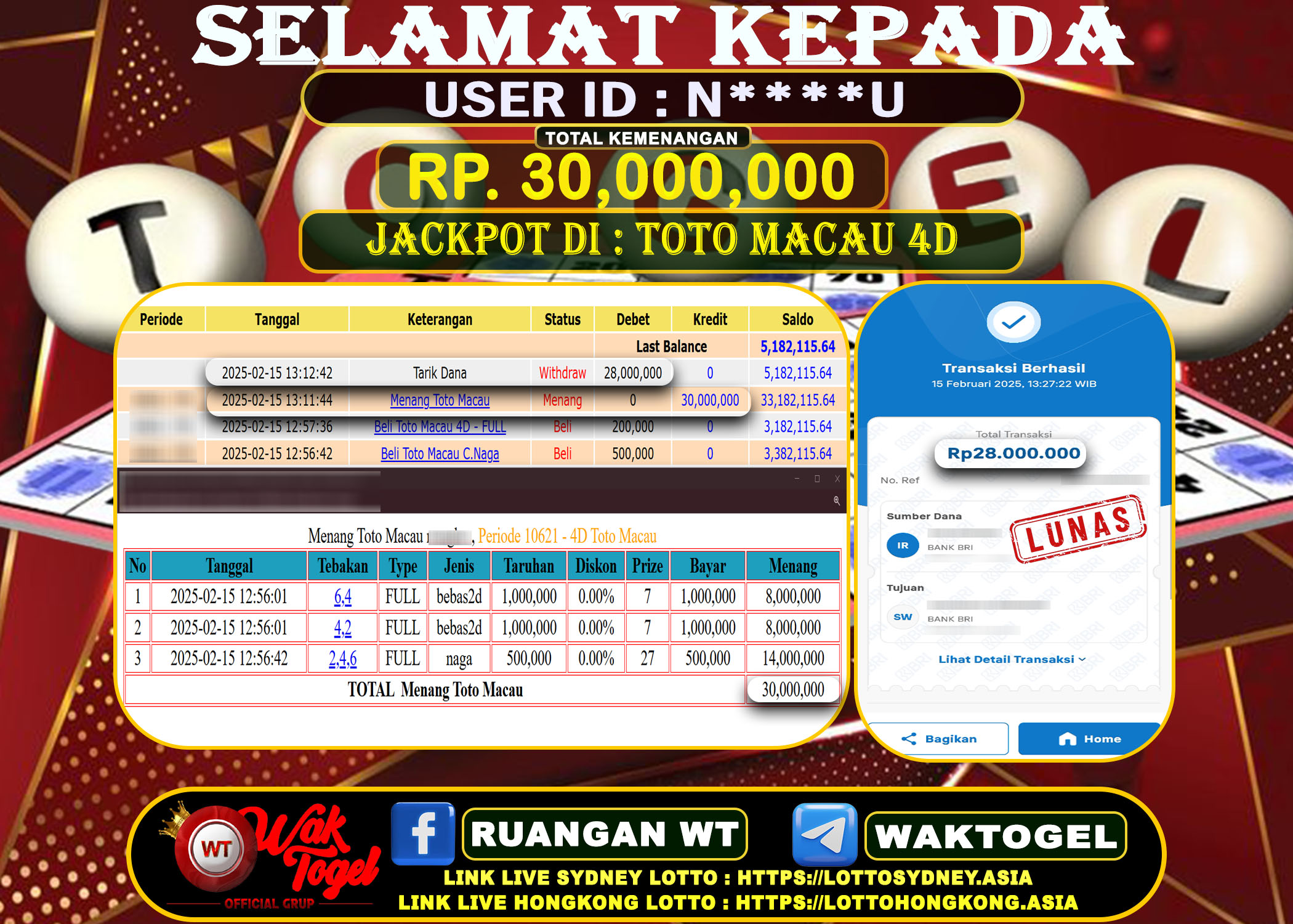 JACKPOT TOGEL WAKTOGEL BUKTI PEMBAYARAN TOTO MACAU 4D WAKTOGEL By JPWT Februari 15, 2025 0 comments 2 min read BUKTI PEMBAYARAN TOTO MACAU 4D WAKTOGEL BUKTI PEMBAYARAN TOTO MACAU 4D WAKTOGEL RP. 30,000,000 – GAME : TOGEL TOTO MACAU 4D (USER ID : N****U) […]